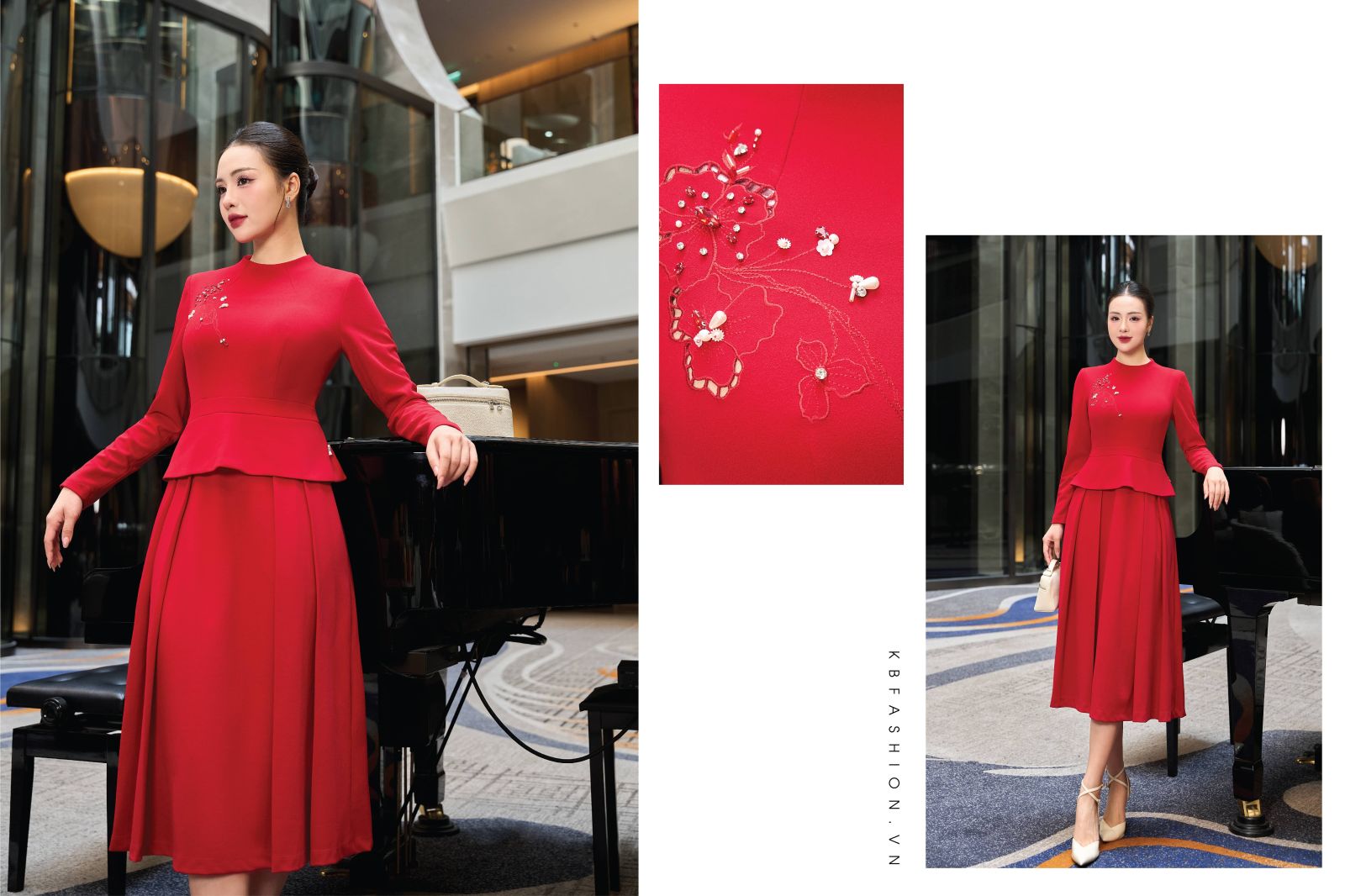Chất vải Umi: được dệt từ sự kết hợp tinh tế giữa sợi nhân tạo và sợi tự nhiên – mang đến cảm giác thoải mái tuyệt đối khi chạm vào làn da, đồng thời giữ được độ đứng form và độ rủ vừa phải để tôn lên phom dáng mọi quý cô. Đây chính là “nền vải” hoàn hảo để KB thổi hồn sáng tạo, tái hiện hình ảnh những đóa hoa dâm bụt, mẫu đơn – loài hoa biểu trưng cho vẻ đẹp nồng nàn và khí chất thanh cao.