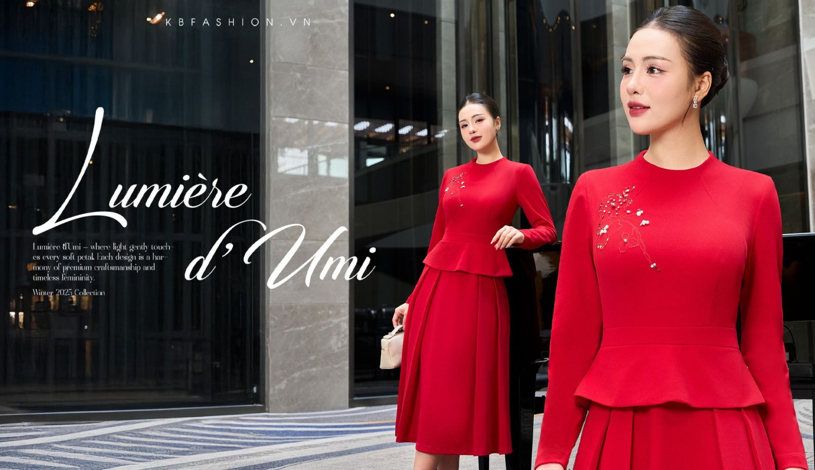 Trong thế giới thời trang, có những chất liệu không chỉ là vải vóc – mà còn là biểu tượng của sự tinh tế và vẻ đẹp “vĩnh cửu”. Với LUMIÈRE D’UMI, KB một lần nữa tôn vinh tinh thần ấy, qua những thiết kế được tạo nên từ chất liệu Umi cao cấp – mượt mà, thoáng nhẹ và mềm mại như ánh sáng đầu ngày.